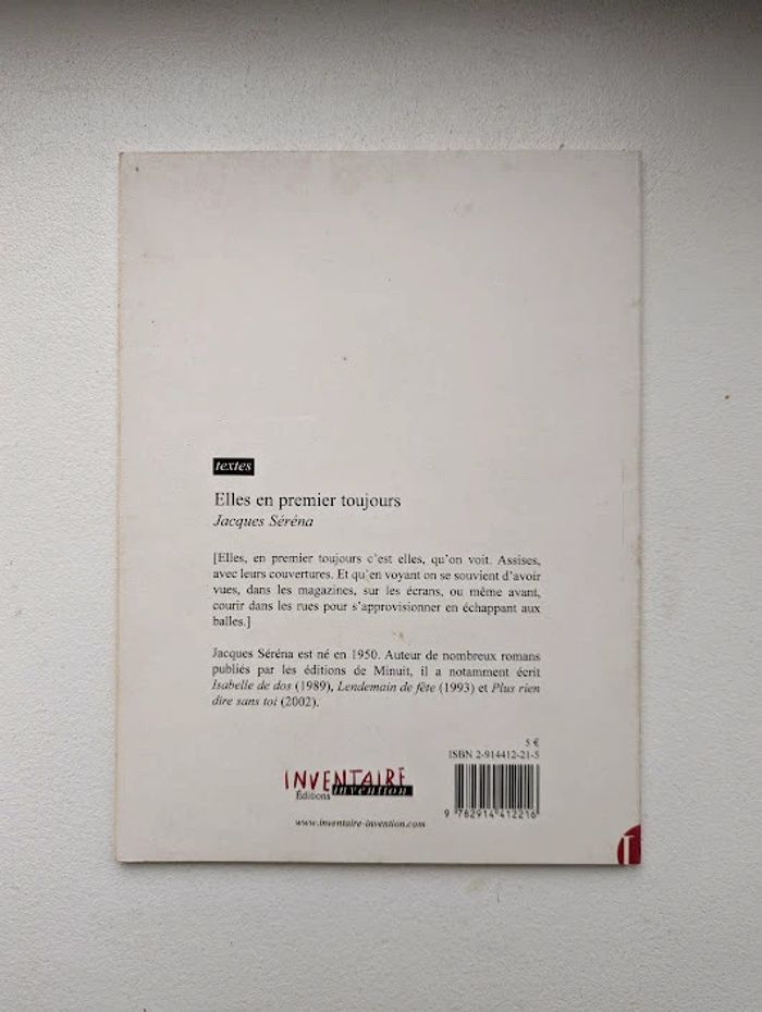 Elles, en premier toujours c'est elles, qu'on voit. Assises, avec leurs couvertures. Et qu'en voyant on se souvient d'avoir vues, dans les magazines, sur les écrans, ou même avant, courir dans les rues pour s'approvisionner en échappant aux balles. Editions Inventaire-Invention Ass.amis 2002 Excellent état D'autres livres à vendre dans mon dressing : #LivresDLau n'hésitez pas à faire des lots pour amortir les frais de port et activer les réductions 😉