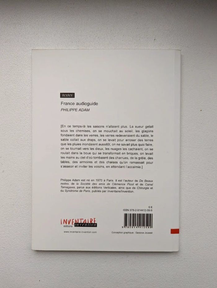 France audioguide, c’est 71 fragments d’une Histoire de France complètement loufoque où l’auteur moque avec une irrésistible drôlerie notre époque réactionnaire faite de « retour aux valeurs », de glorification de « la France éternelle », et de mise en avant de « notre patrimoine ». En soixante pages, tout est dit : événements, personnages, hauts lieux historiques nous sont racontés comme ils devraient l’être toujours, avec un humour renversant qui semble être aujourd’hui le meilleur des remèdes contre un air du temps... Editions Inventaire-Invention Ass.amis 2007 Excellent état D'autres livres à vendre dans mon dressing : #LivresDLau n'hésitez pas à faire des lots pour amortir les frais de port et activer les réductions 😉