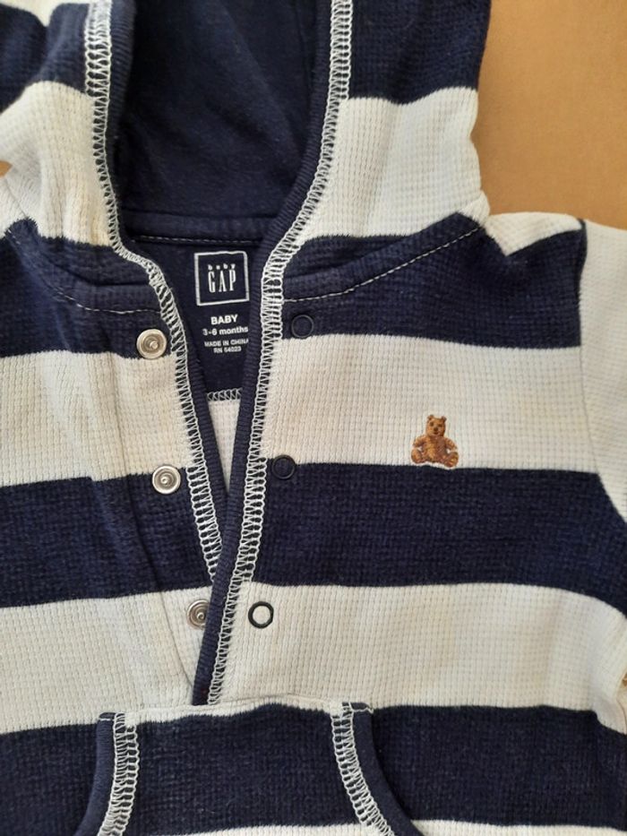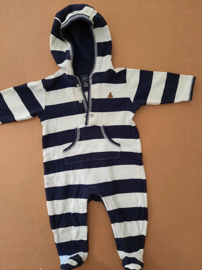 Pyjama mi-saison de marque Gap Coton nid d'abeille Coloris blanc rayé bleu marine Très bon état 3-6 mois (taille grand) D'autres vêtements bébé à vendre sur mon profil : n'hésitez pas à faire des lots pour activer les réductions et amortir les frais de port ! #3moisDLau #6moisDLau