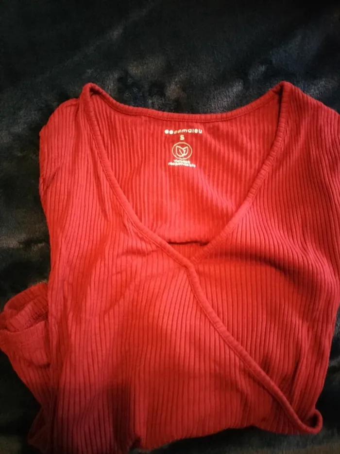 Tee shirt manches longues camaïeu rouge croisé sur l avant