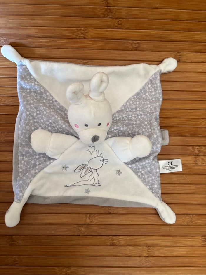 Très bon état #doudouplatlapinblancgrissimbatoys #doudouplatlapinblancgrisattachesucettesimbatoys