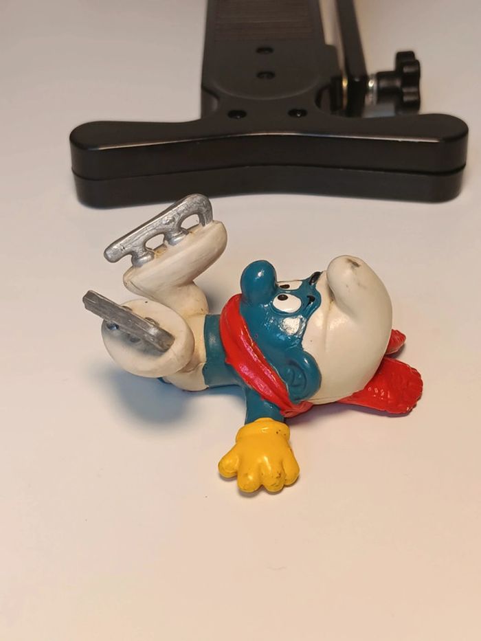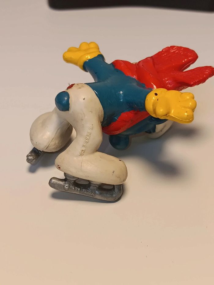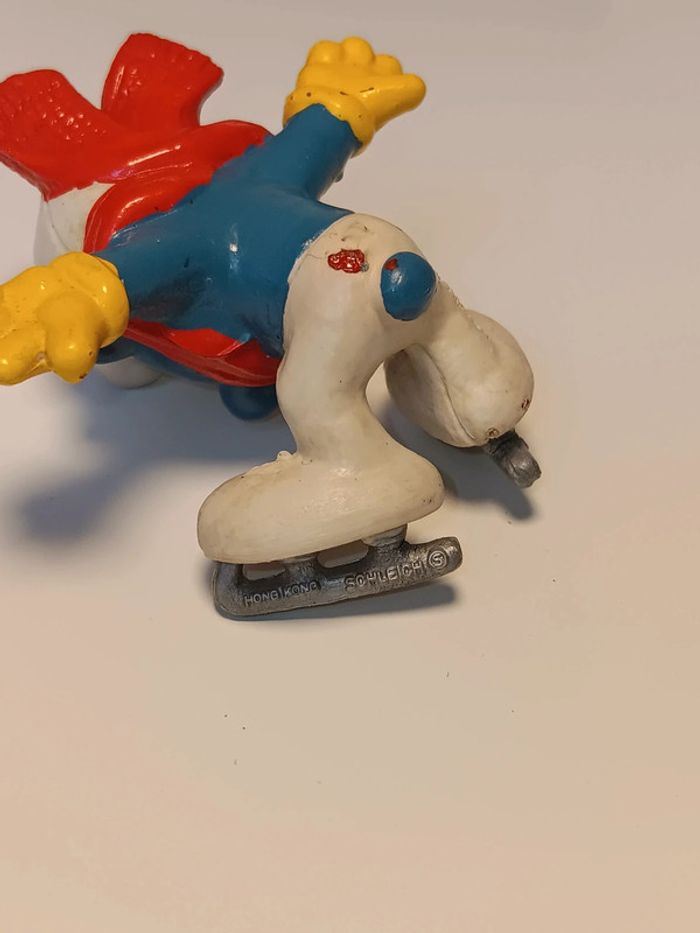 Figurine vintage schleich 197? Schtroumpf patin a glace peyo made in hong kong