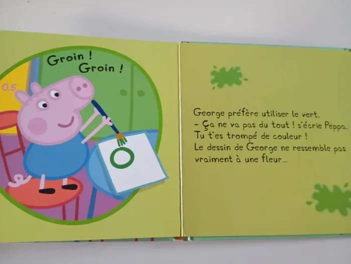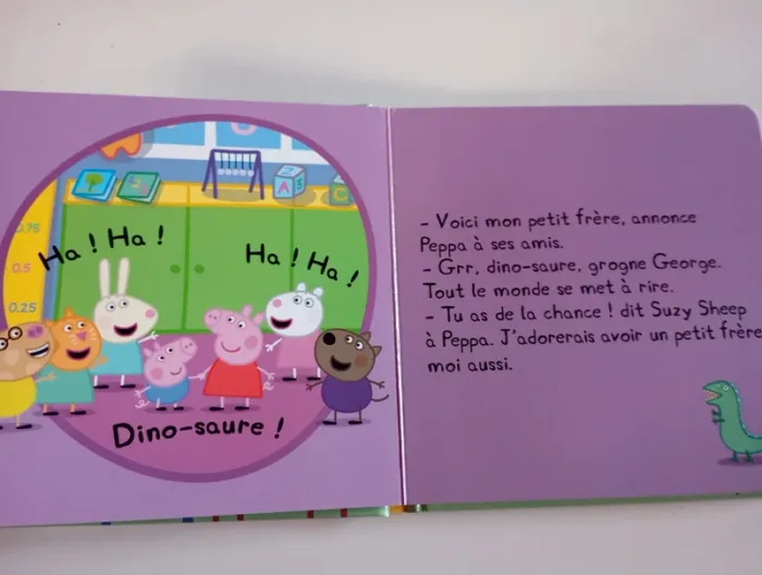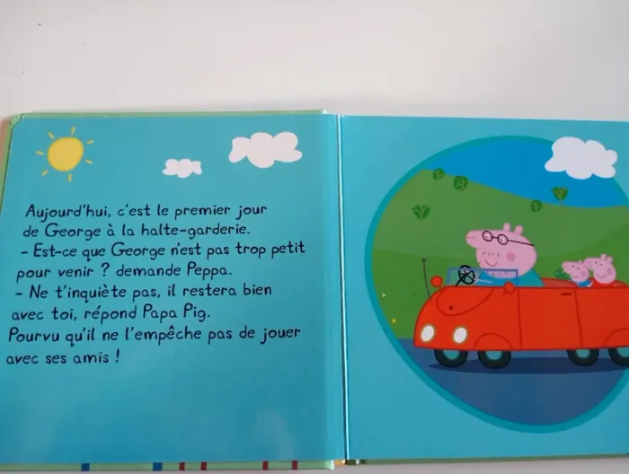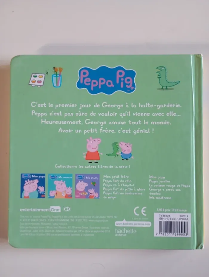 C’est le premier jour de George à la halte-garderie. Peppa n’est pas sûre de vouloir qu’il vienne avec elle... Heureusement, George amuse tout le monde. Avoir un petit frère, c’est génial ! Éditeur ‏ : ‎ Hachette Jeunesse 16 pages Âge de lecture ‏ : ‎ 2 - 3 ans Dimensions ‏ : ‎ 17.6 x 1.2 x 17.7 cm Livre en très bon état #peppapig #garderie