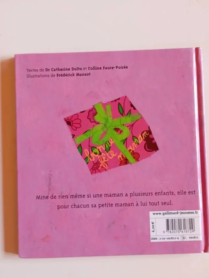Une maman, on la connaît depuis avant notre naissance. Elle nous protège et nous comprend même avant qu'on sache parler. On s'aime et on se déteste parfois. On est jaloux de l'homme qu'elle aime. Mais tout cela, c'est grandir. Éditeur ‏ : ‎ Giboulées 28 pages Âge de lecture ‏ : ‎ 3 - 6 ans Dimensions ‏ : ‎ 17.5 x 0.9 x 20.8 cm Livre en bon état Je vends d'autres livres de Dolto #phil_peg_dolto #dolto #maman #relationmèreenfant #amourinconditionnel