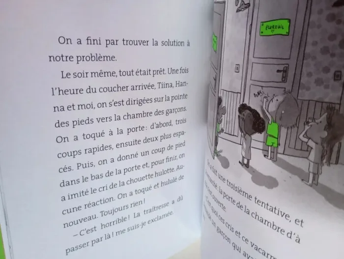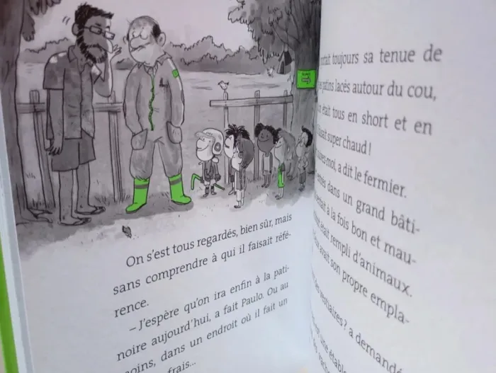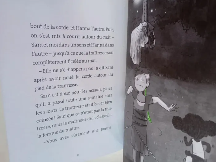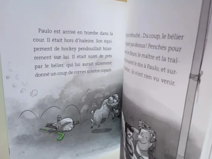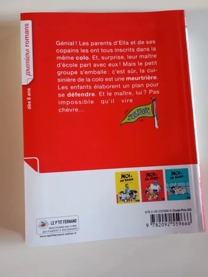 La super bande d'Ella en colo ! Un roman illustré, facile à lire tout seul et à comprendre. Une histoire rythmée et passionnante qui donne vraiment envie de lire. L'histoire : C'est l'été ! Ella et sa bande s'ennuient... Heureusement, leurs parents ont la bonne idée de tous les inscrire dans la même colo. Ultime surprise : leur maître est là aussi. Mais très vite, le petit groupe déchante : c'est sûr, la cuisinière de la colo est une meurtrière. Une seule solution : se servir du bélier de la ferme voisine pour se protéger. Et le maître, lui ? Pas impossible qu'il vire chèvre... Éditeur ‏ : ‎ Nathan 120 pages Âge de lecture ‏ : ‎ 7 - 10 ans Dimensions ‏ : ‎ 14.7 x 1.2 x 19.2 cm Livre en excellent état Je vends d'autres premiers romans #phil_peg_premiersromans ou sur les vacances #phil_peg_vacances #colonie #été #vacances