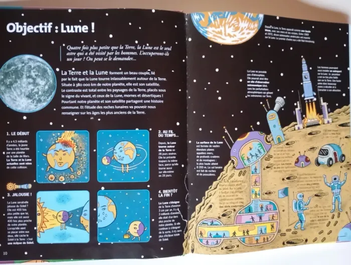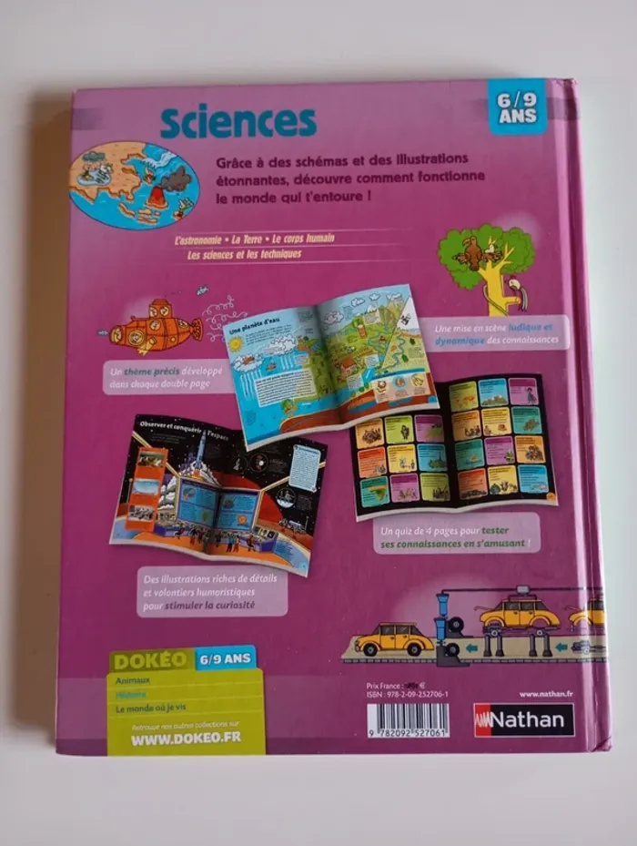 Un livre grand format plein d'explications, de schémas et d'illustrations étonnantes pour mieux connaître et comprendre le monde qui nous entoure. Avec une animation en réalité augmentée : Saturne pas rond !, un jeu pour découvrir les huit planètes du système solaire. Éditeur ‏ : ‎ Nathan 70 pages Âge de lecture ‏ : ‎ 6 - 9 ans Dimensions ‏ : ‎ 22.8 x 1 x 26 cm Livre en très bon état (Quelques traces de manipulation) Je vends d'autres livres de la même collection #phil_peg_dokéo