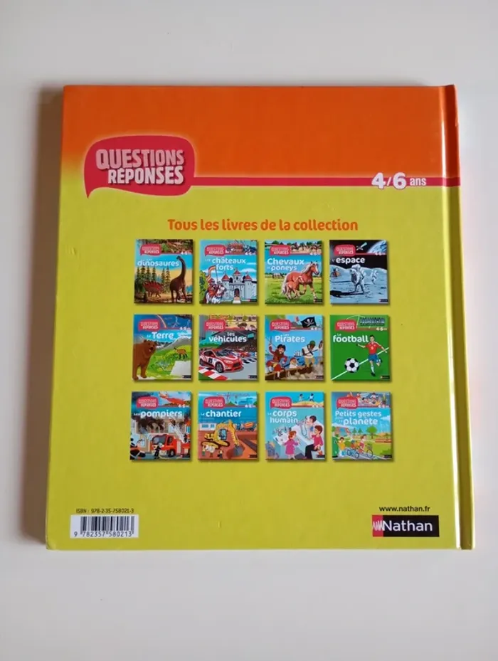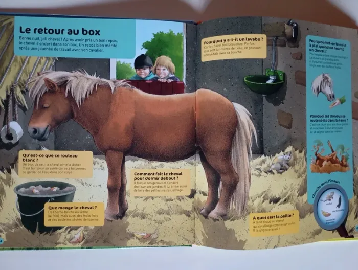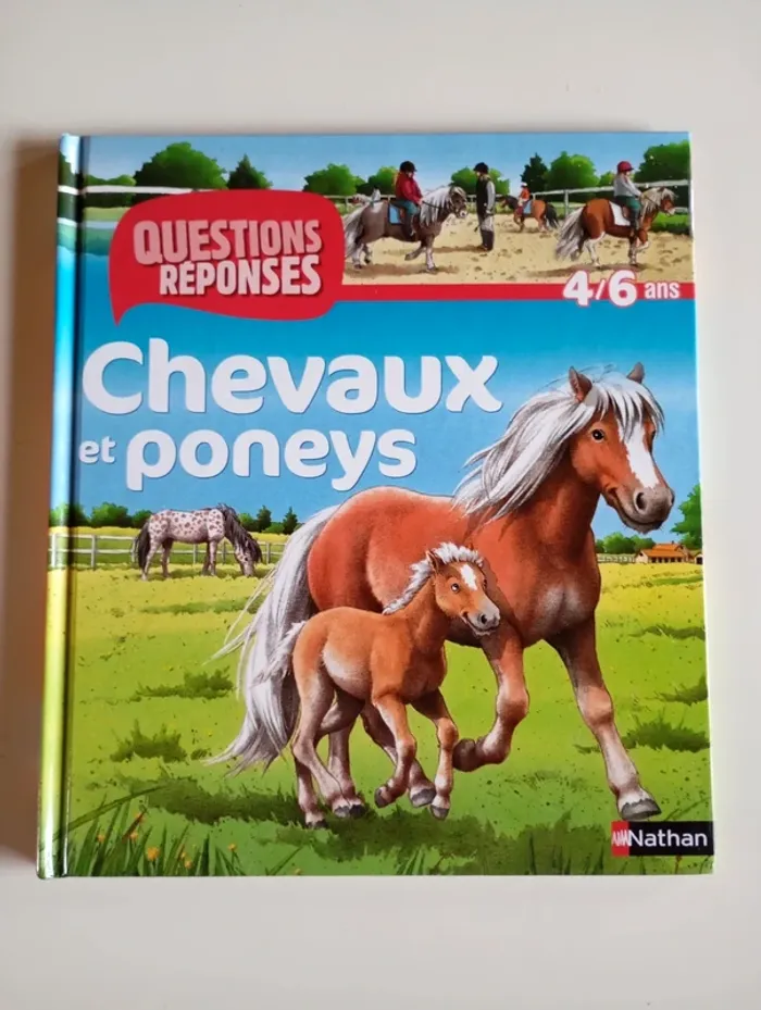 Des questions pour éveiller la curiosité des enfants ! Pourquoi les poneys sont-ils plus petits ? Le poulain boit-il du lait ? Comment font les chevaux pour dormir debout ? Éditeur ‏ : ‎ Nathan 29 pages Âge de lecture ‏ : ‎ 5 - 8 ans Dimensions ‏ : ‎ 22.8 x 1 x 26 cm Livre en très bon état Je vends d'autres livres questions réponses #phil_peg_questionsréponses, #phil_peg_chercheettrouve, #phil_peg_chevaux #questionsréponses #chercheettrouve #poneys #chevaux