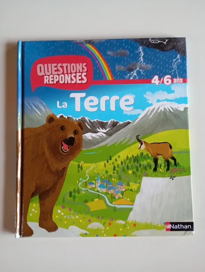 Des questions pour éveiller la curiosité des enfants ! D'où vient la pluie ? Pourquoi il fait noir la nuit ? Qu'est-ce qui sort du trou du volcan ? Éditeur ‏ : ‎ Nathan 32 pages Âge de lecture ‏ : ‎ 5 - 8 ans Dimensions ‏ : ‎ 22.8 x 1 x 26 cm Livre en très bon état Je vends d'autres livres questions réponses #phil_peg_questionsréponses, #phil_peg_chercheettrouve #questionsréponses #chercheettrouve #terre #planète