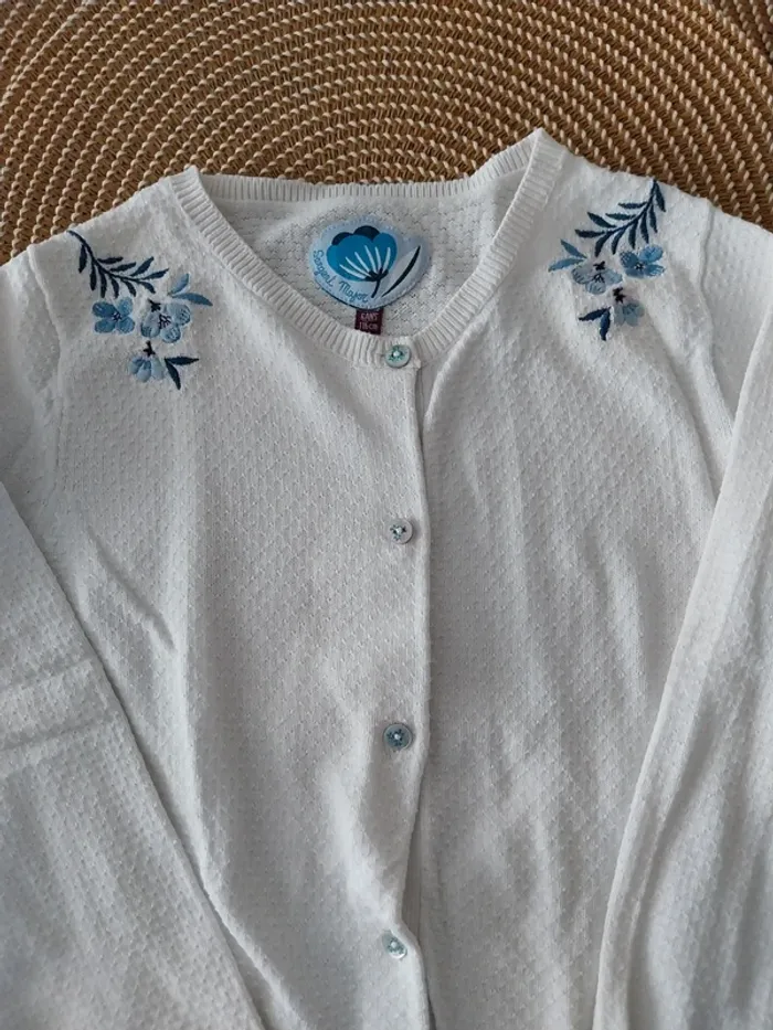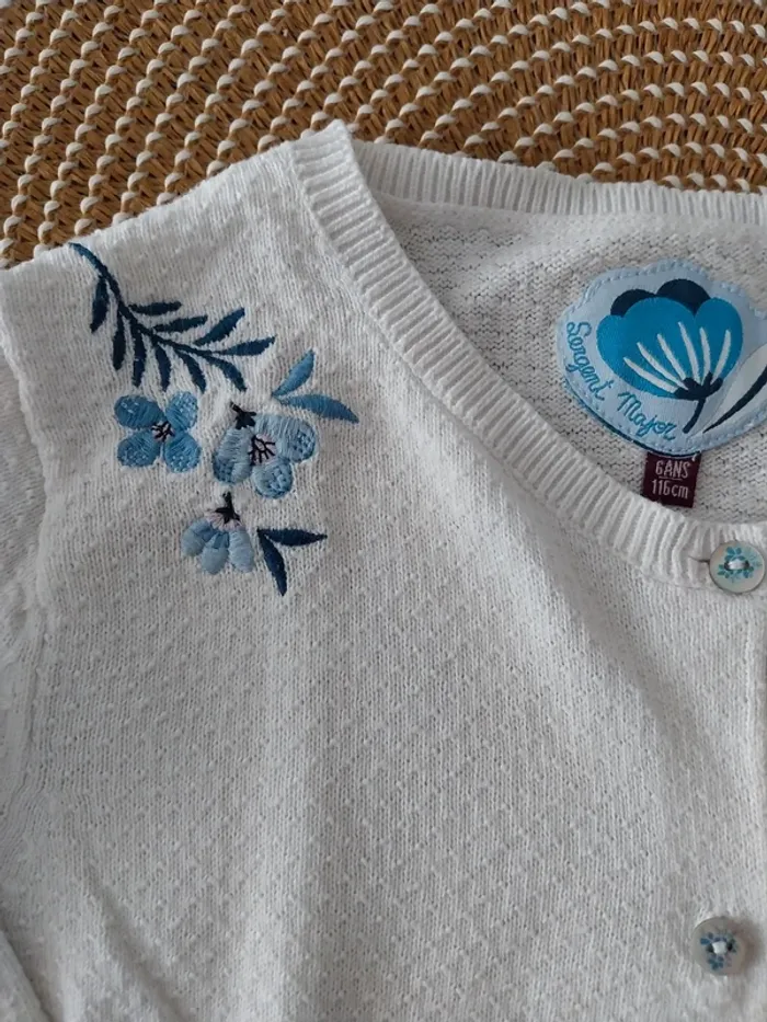 Gilet Blanc fille 6 ans avec broderie bleu ciel - photo numéro 1