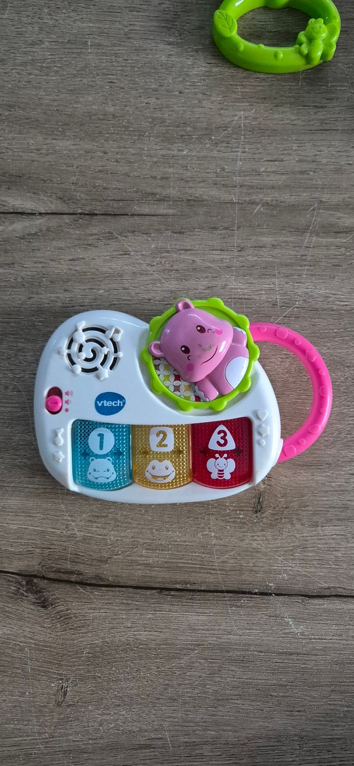 Lot de 3 hochets : piano avec sons et lumière, hochet miroir en forme de fleur et hochet en forme de grenouille Vtech Bon état