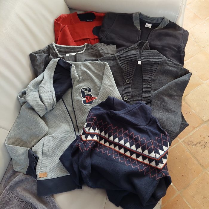 Lot de vêtements garçon 4 pantalons marque kiabi,okaidi et tape à l'œil 1 pull marque okaidi 5 gilets marque okaidi, tape à l'œil, la halle 5 tee-shirts marque okaidi, gemo, tape à l'œil, kiabi 3 chemises marque kiabi, tape à l'œil et okaidi
