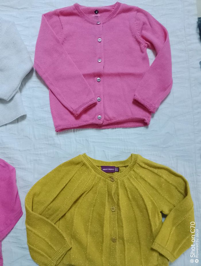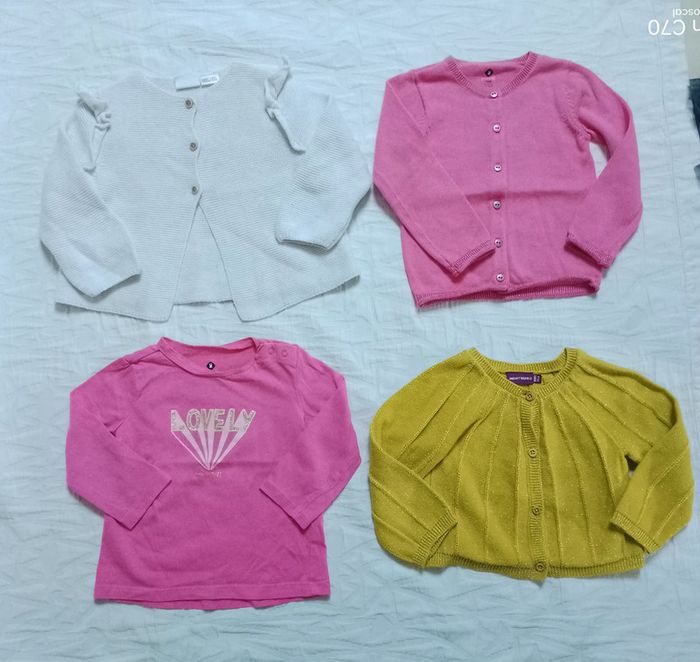 Lot 3 gilets 1 Zara coton 9 12 mois 80 cm 1 Grain de blé rose 1 Sergent Major moutarde pailleté 1 haut Grain de blé 18 mois Tout le 18 mois fille ici 👇 #angiolinolino_18moisfille