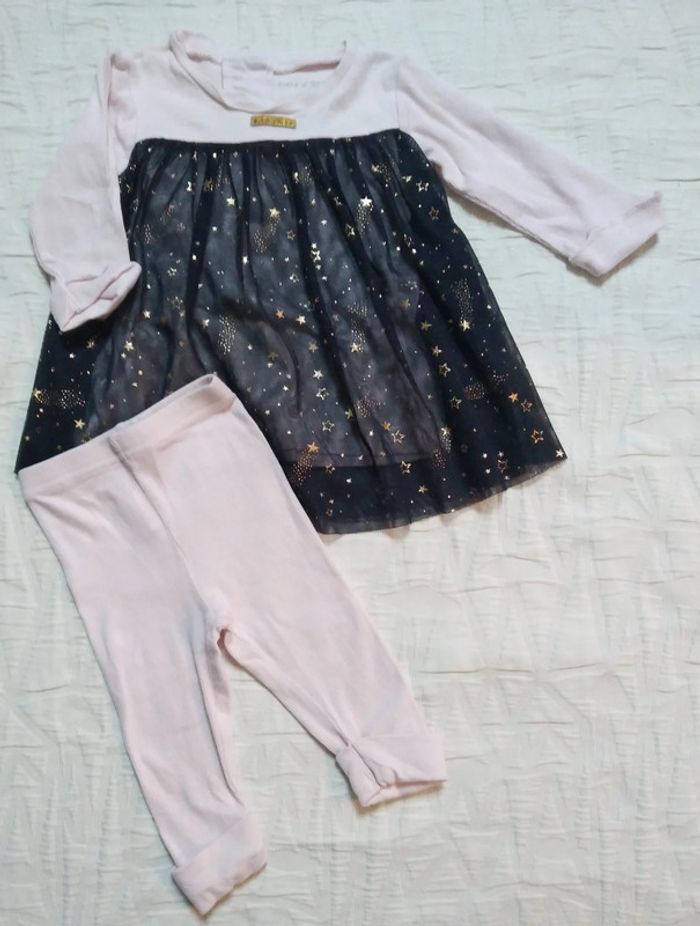 Ensemble Sucre d orge Tunique blouse Tulle pailleté or Legging 3 mois #angiolinolino_3moisfille