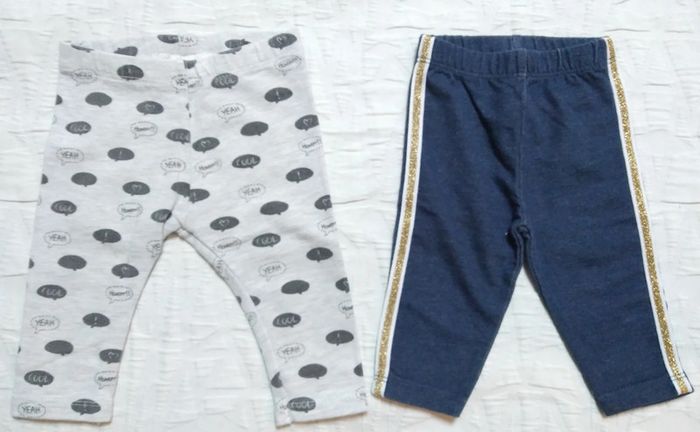 Lot 2 leggings pantalons 1 beige bulle zara (3 6 mois convient 3 mois) 1 façon Jean bande pailleté or 3 mois #angiolinolino_3moisfille