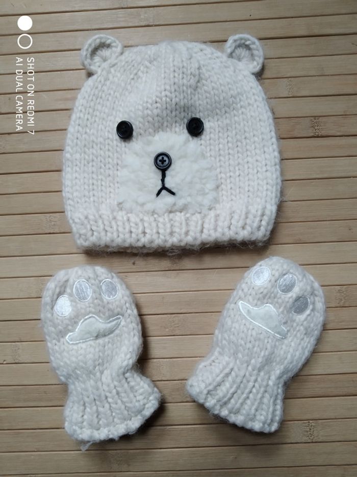 Ensemble Bonnet et moufles Très bon état Marque Tex Noter 9 12 mois mais taille petit je dirais 6 9 mois #angiolinolino_accessoiresbebe