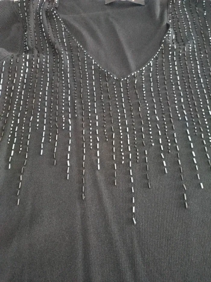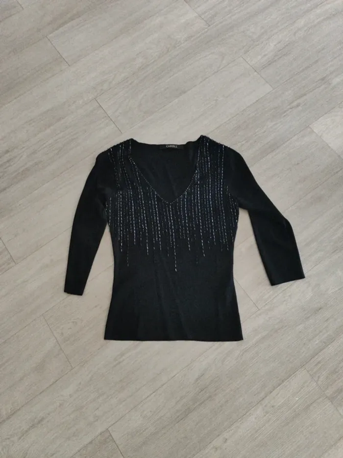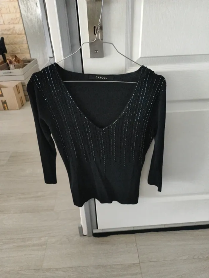 Magnifique pull avec perles noir. De marque Caroll Taille 38