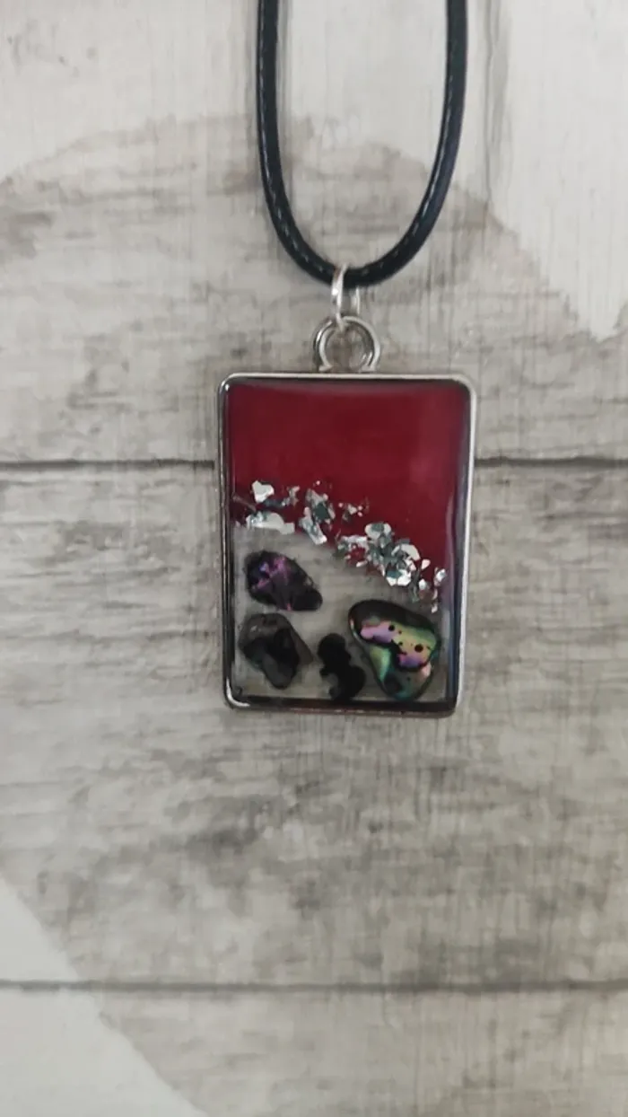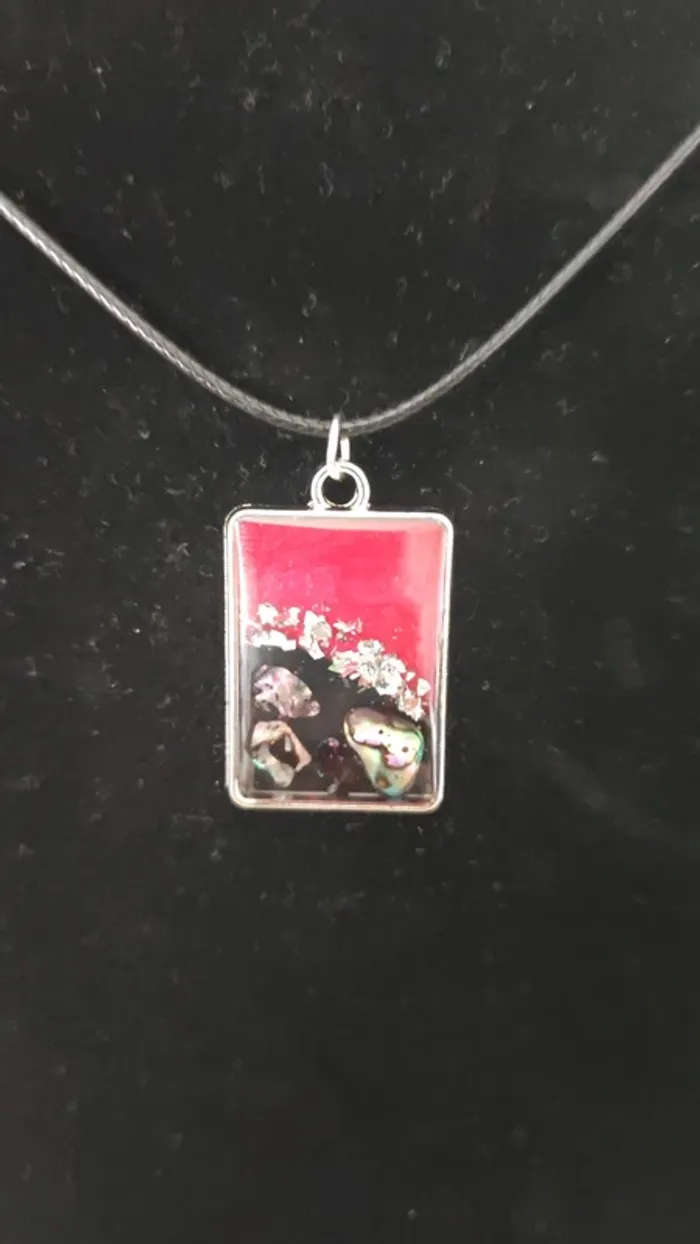 Collier rouge et pierres nacrées noires neuf - photo numéro 4