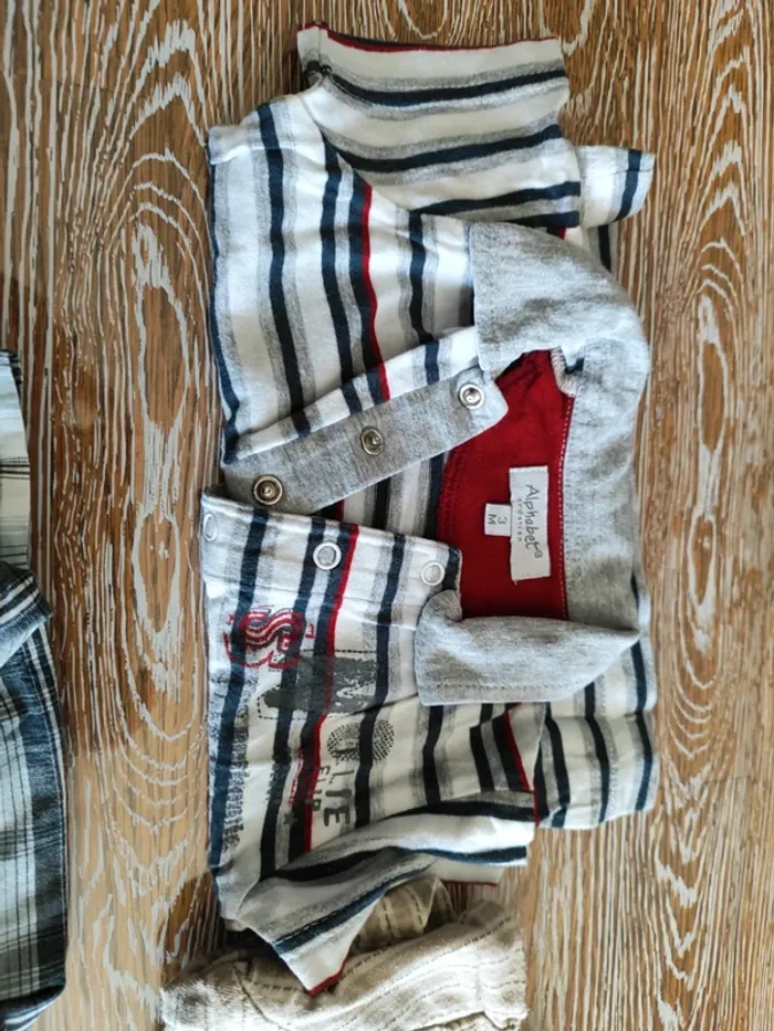 lot de 3 tee-shirts avec col taille 3 mois 2 manches courtes 1 manches longues N'hésitez pas à me contacter pour créer des lots. Ajouter ou supprimer des articles