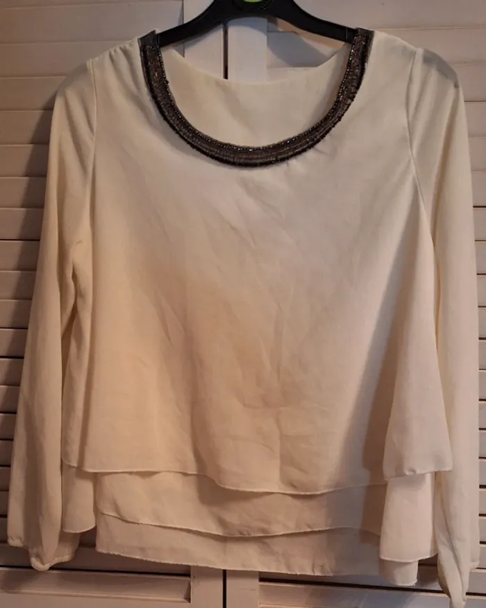 Tunique à volant taille unique avec perle au col en très bon état