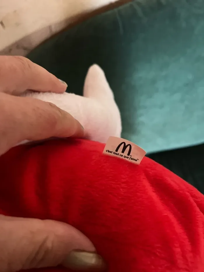 Peluche macdo, il y a un mécanisme à l’intérieur qui fait du bruit, mais qui ne semble plus fonctionner
