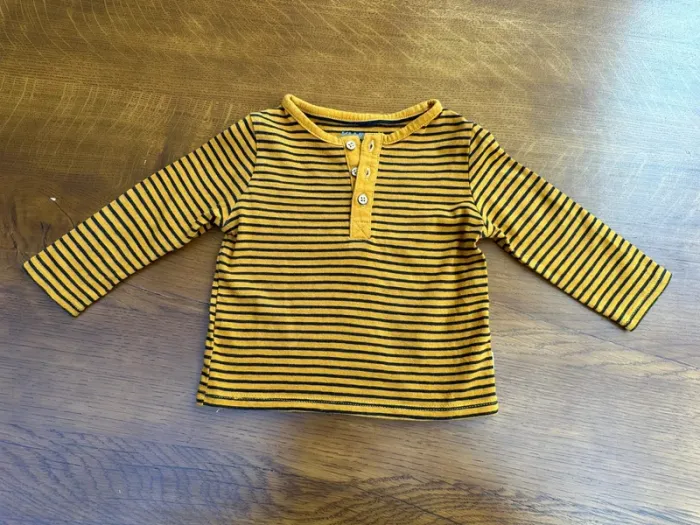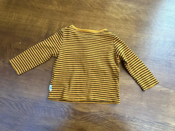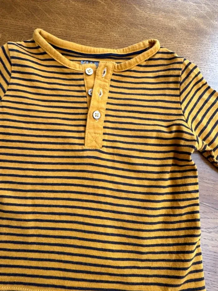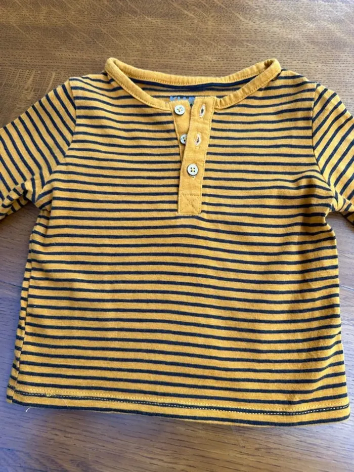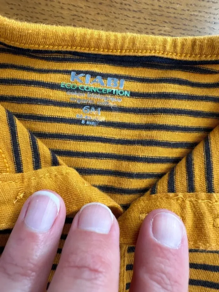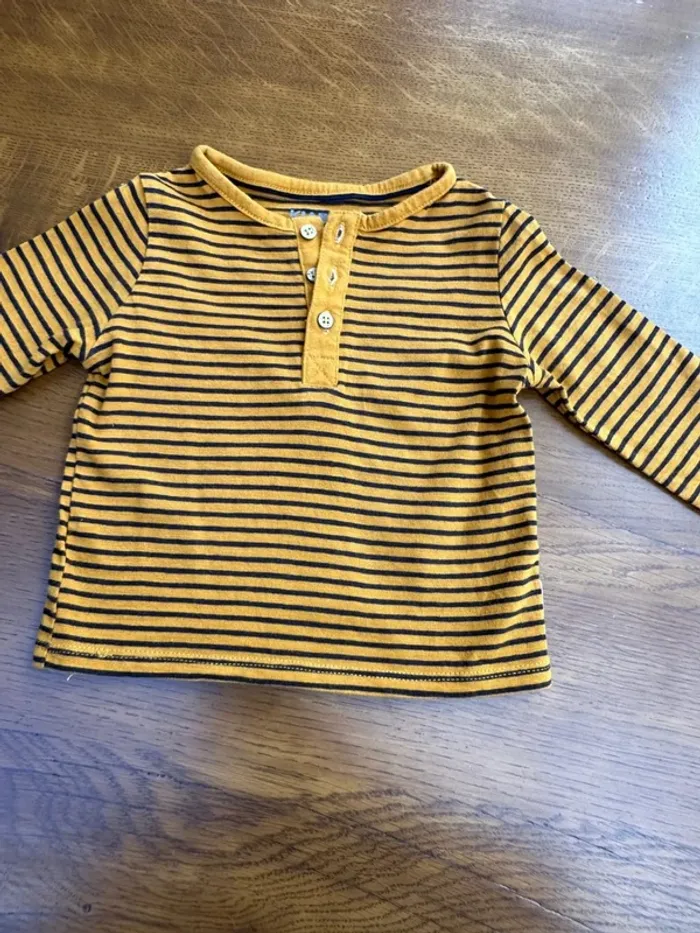Vends T-shirt manche longue rayés jaune et noir kiabi 6 mois en très bon état