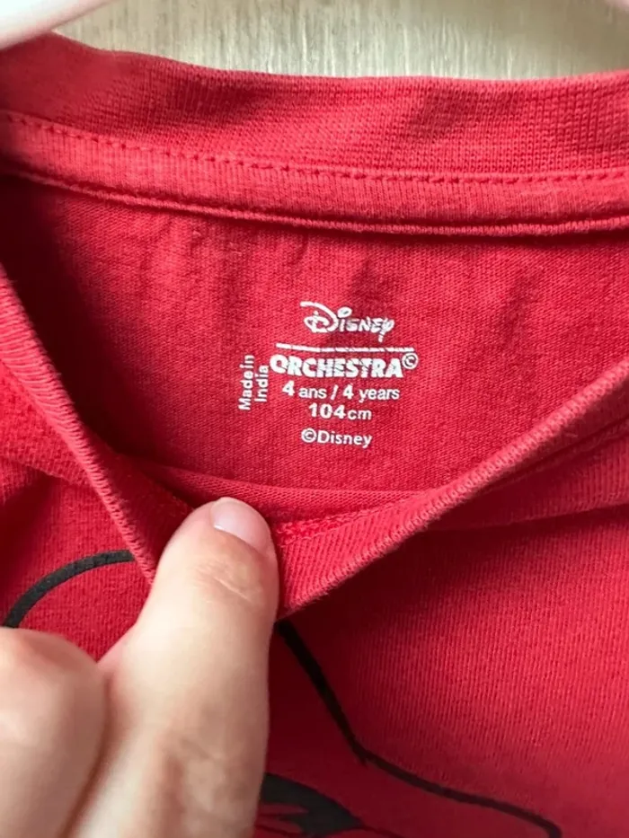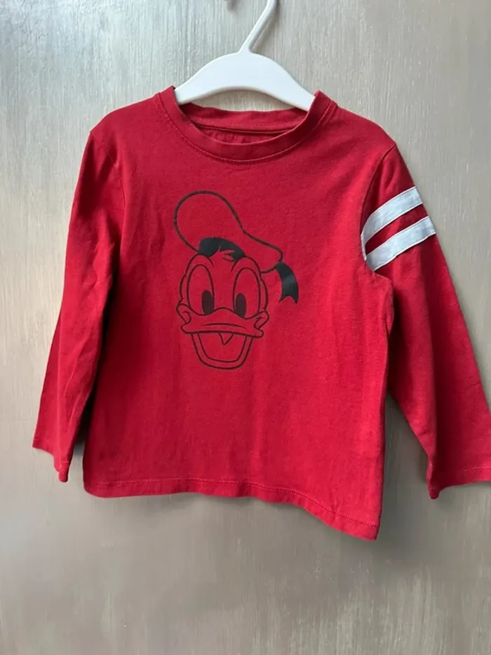 Vends T-shirt rouge manche longue Orchestra disney Donald 4 ans en bon état