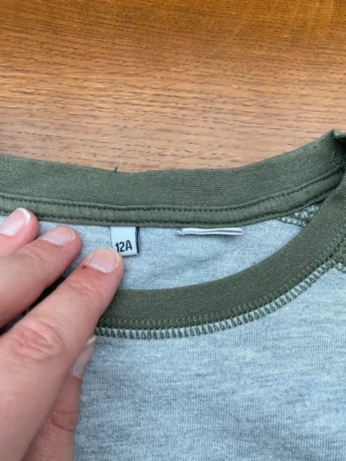 Vends T-shirt garçon 12 ans strass vert et gris chantier en bon état