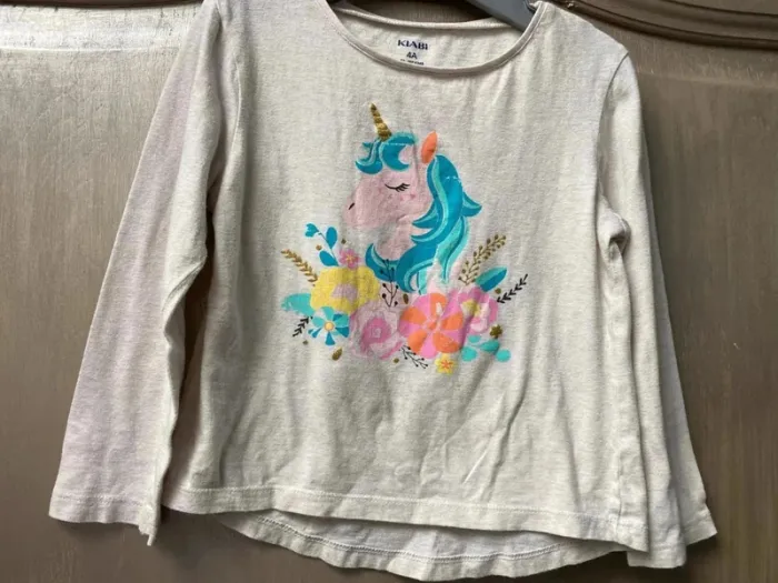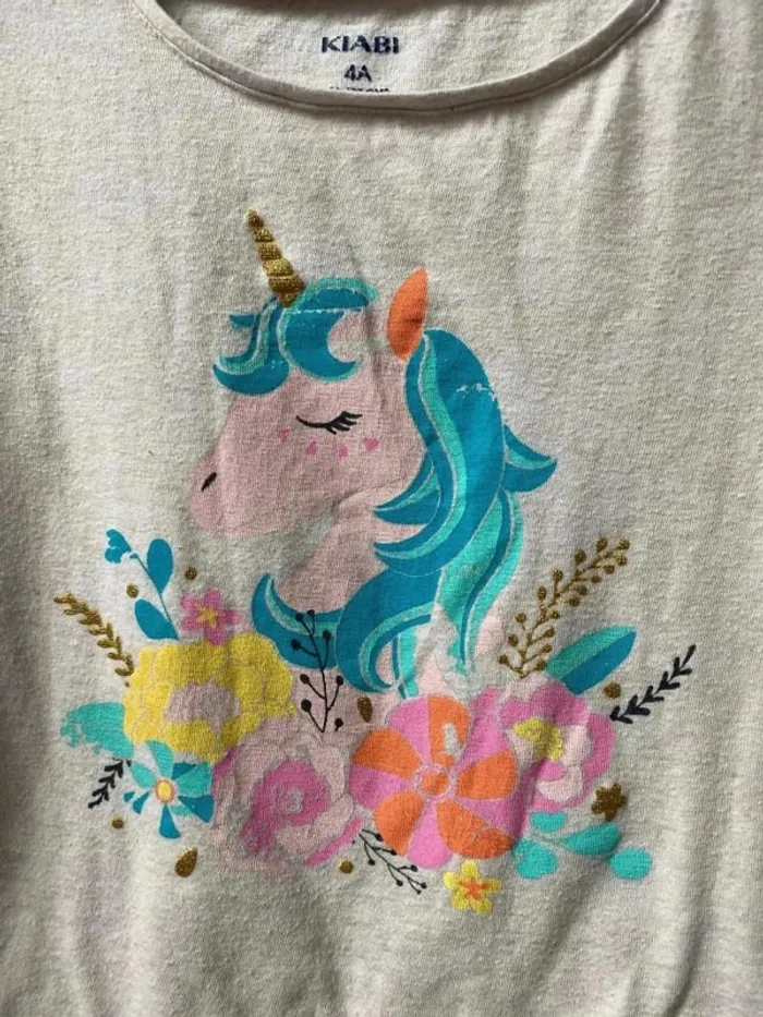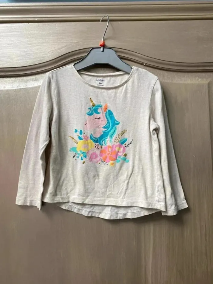 Vends T-shirt manche longue beige licorne kiabi 4 ans en très bon état