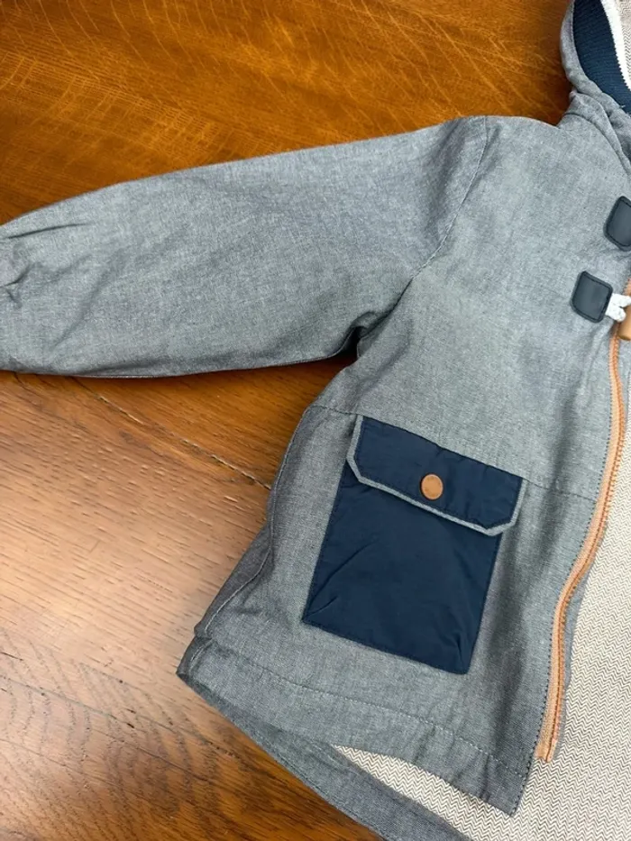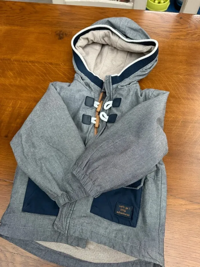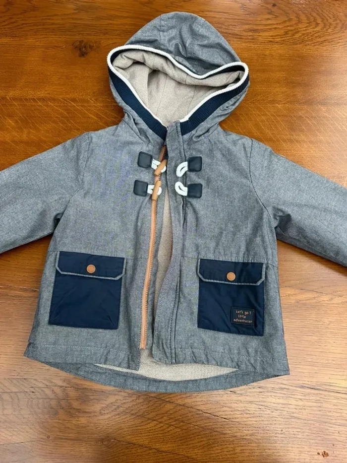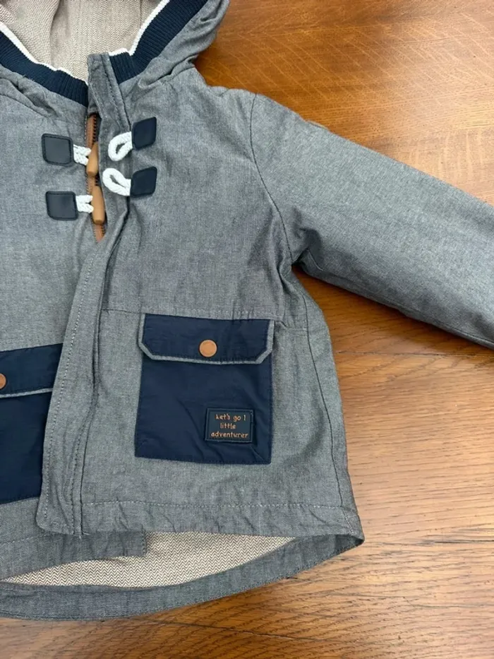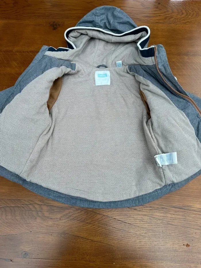Vends Veste gris en bleu Obaibi 23 mois en très bon état Parka / imperméable