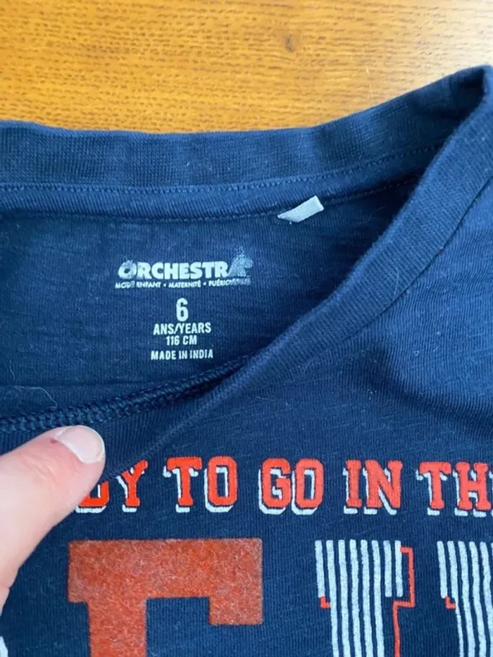 Vends T-shirt bleu marine et rouge Orchestra 6 ans en très bon état