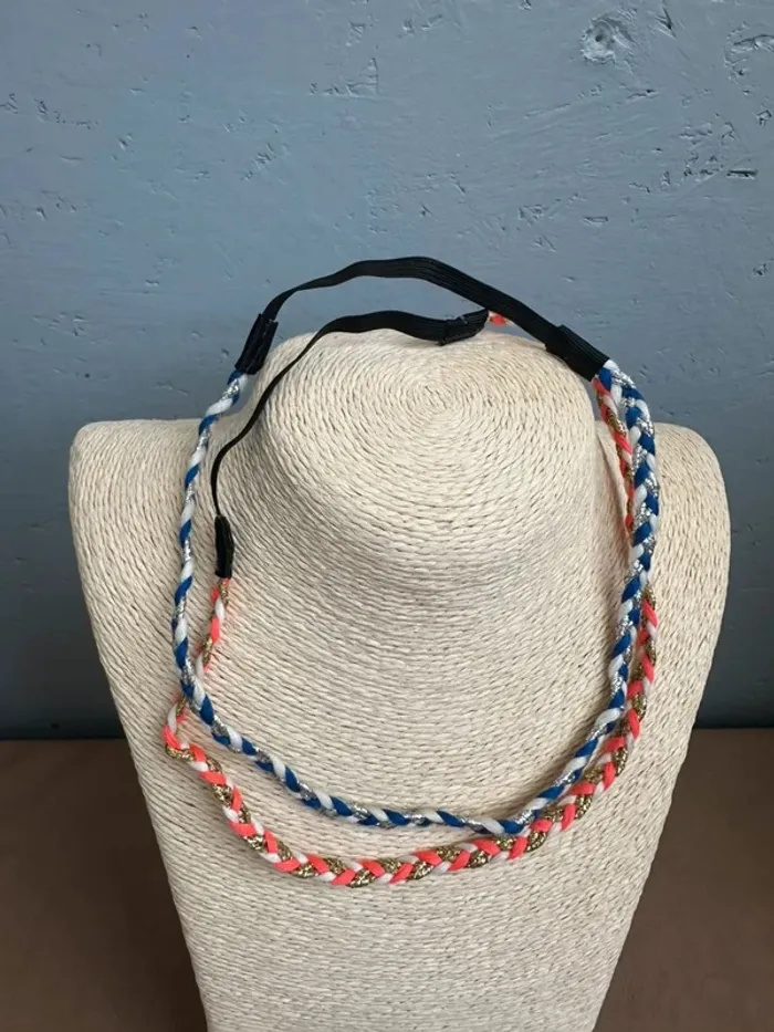 Vends Lot de 2 bandeaux à cheveux tressés bleu et orange en très bon état