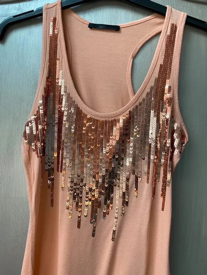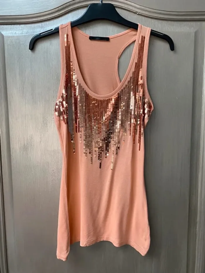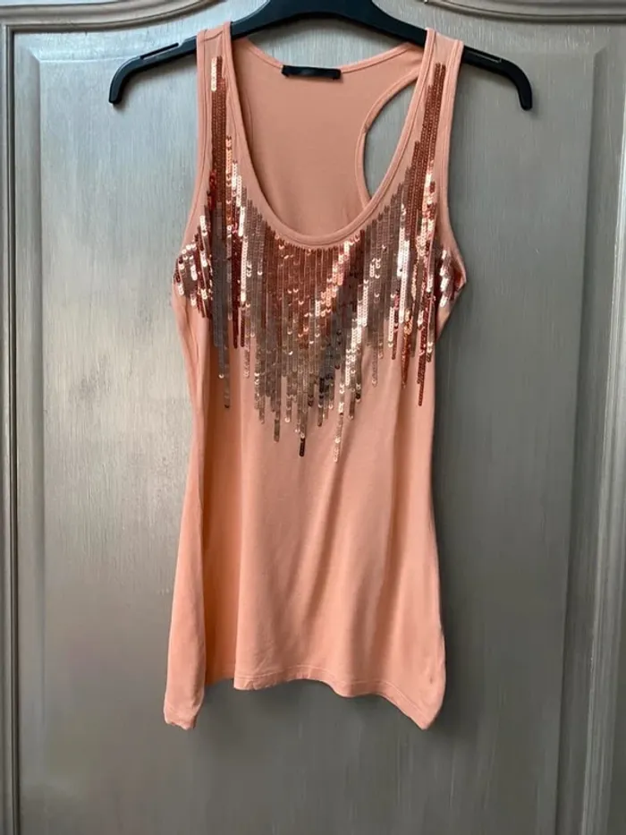 Vends Débardeur Mim saumon avec strass en bon état