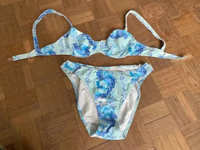 Vends Maillot de bain 2 pièces bleu clair en bon état Taille : 80B/42