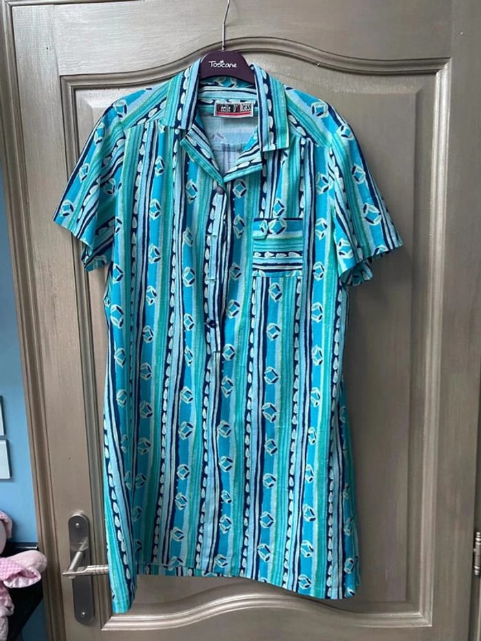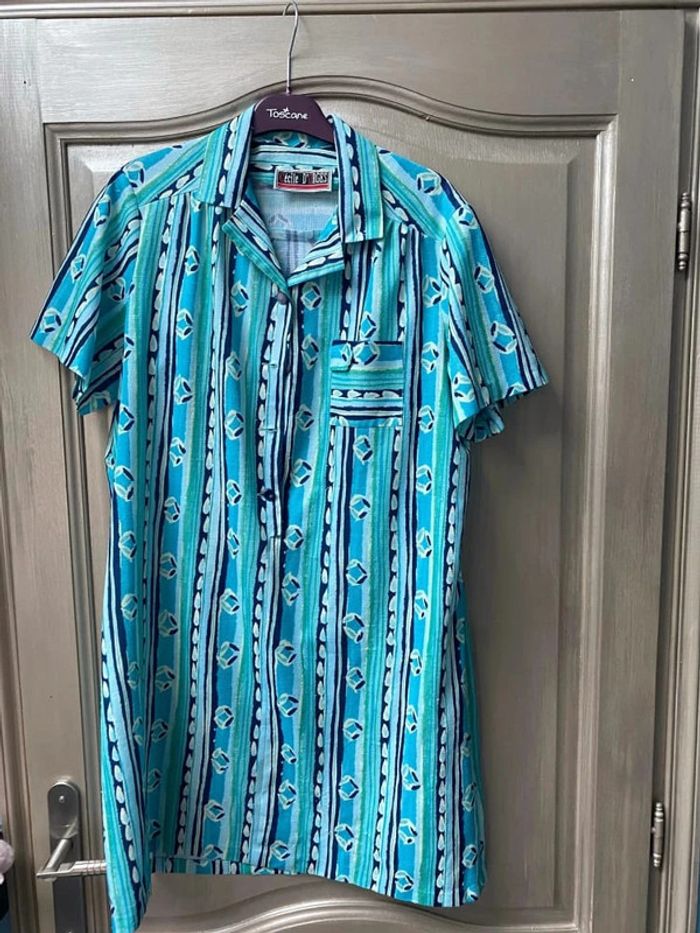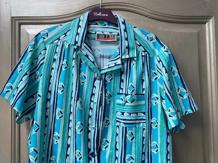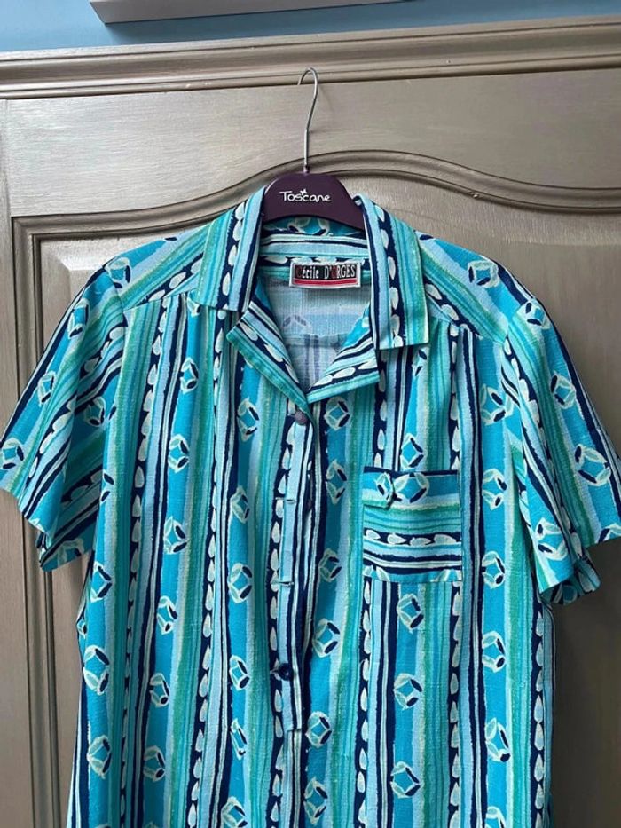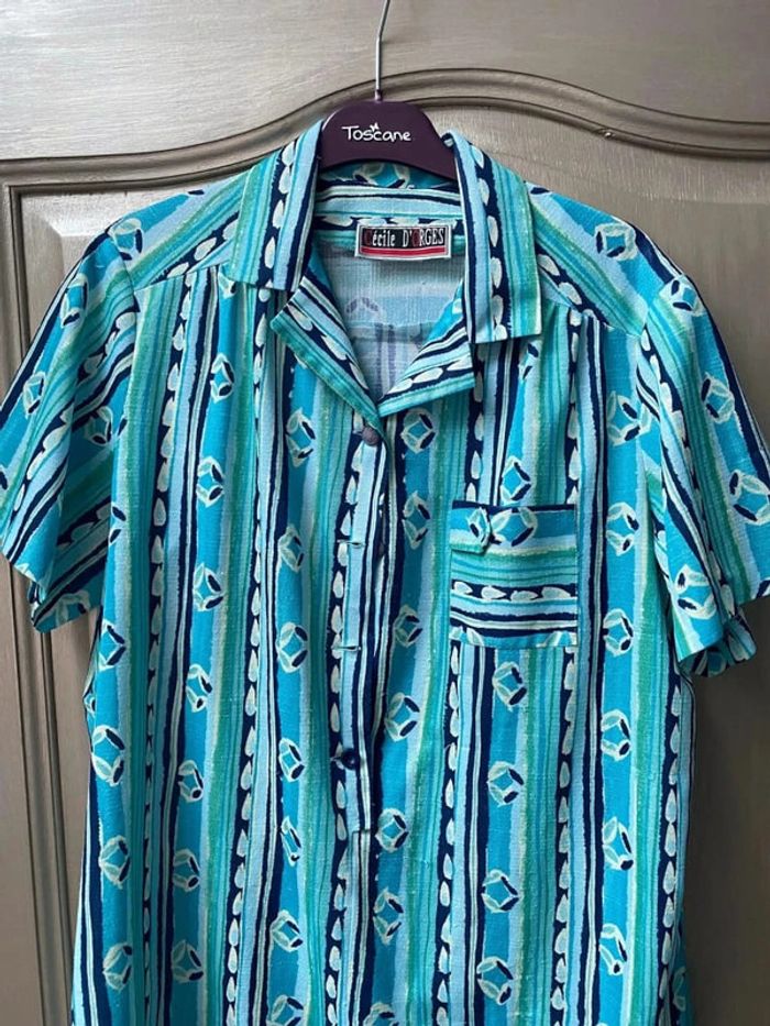 Blouse vintage verte et bleu Cécile d’orges 42/44 - photo numéro 1