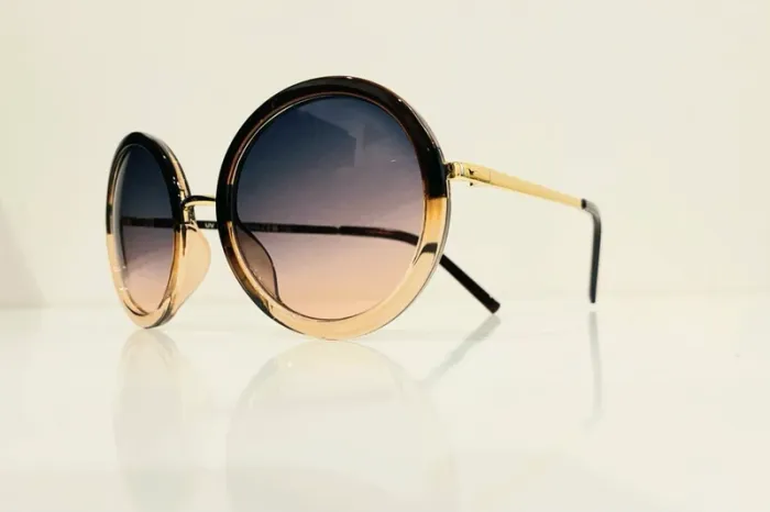 Lunette de soleil femme marron dégradés bras dorés UV protection catégorie 3
