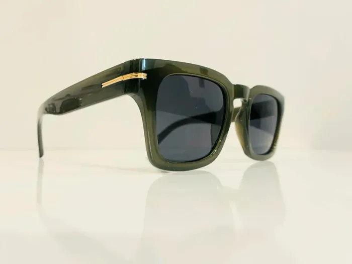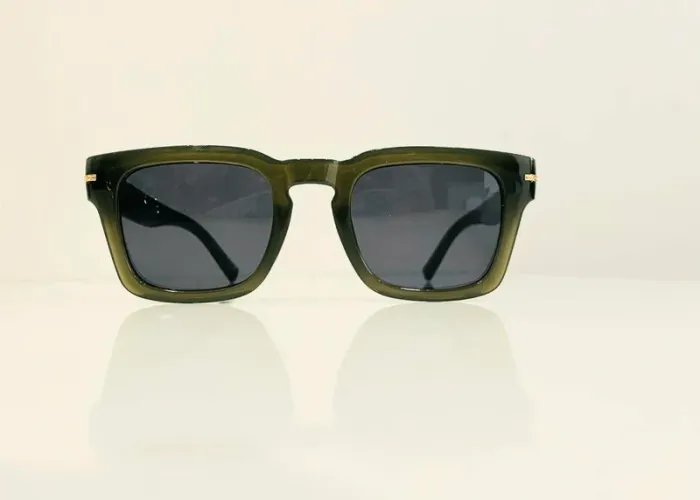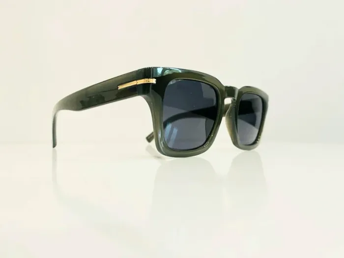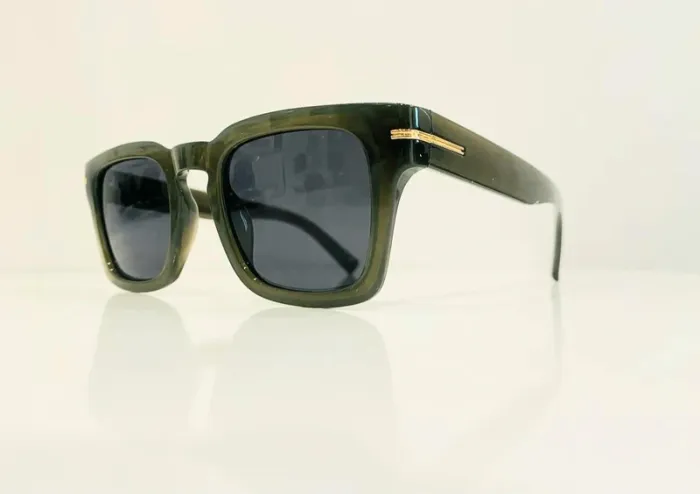 Lunette de soleil mixte rectangulaire verte et dorée uvprotection catégorie 3