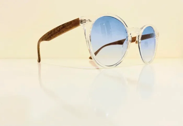 Lunette de soleil mixte transparente verres bleus dégradés bras effet bois UV protection catégorie 1 - photo numéro 1