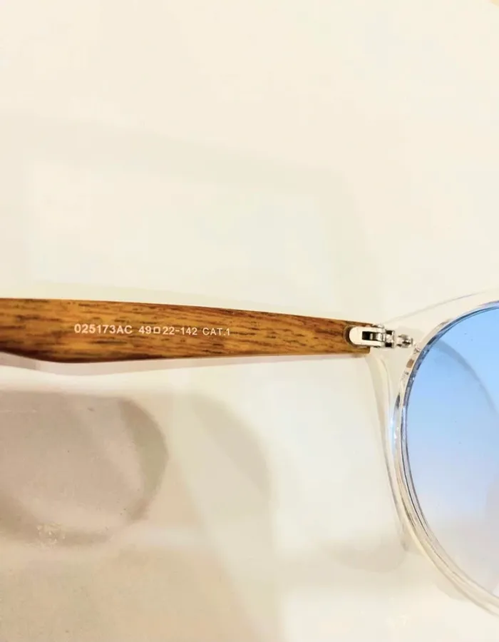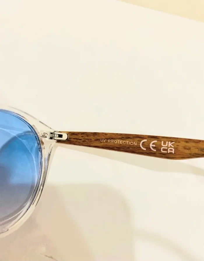 Lunette de soleil mixte transparente verres bleus dégradés bras effet bois UV protection catégorie 1 - photo numéro 4