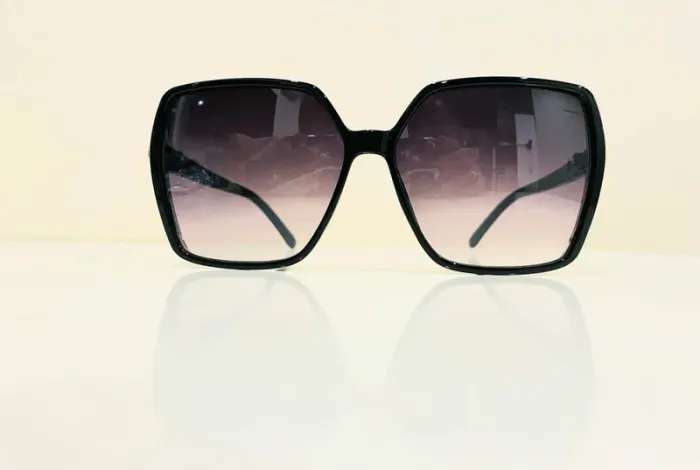 Lunette de soleil femme noire et dorée hexagonale verres dégradés uvprotection catégorie 3