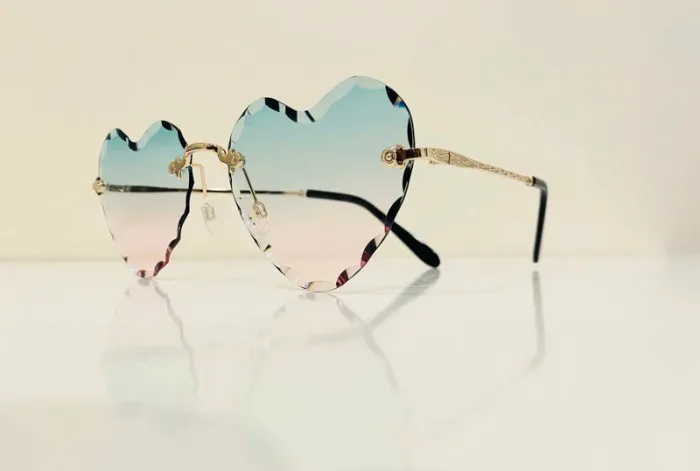 Lunette de soleil femme cœur percée dorée verres dégradés uvprotection catégorie 2