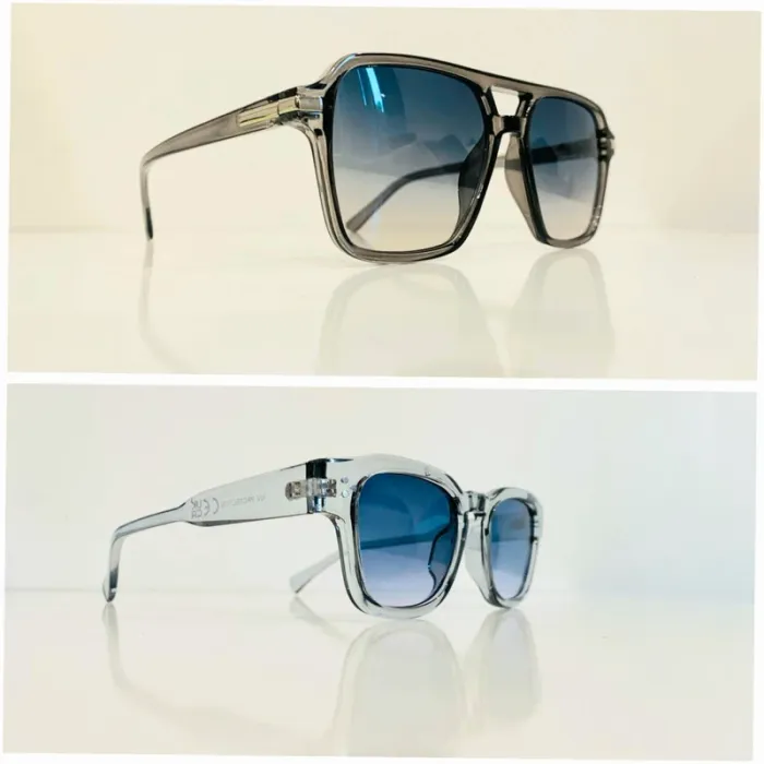 Lot de deux lunettes de soleil mixte grises transparentes verres bleus uvprotection cat 2 et 3 - photo numéro 1