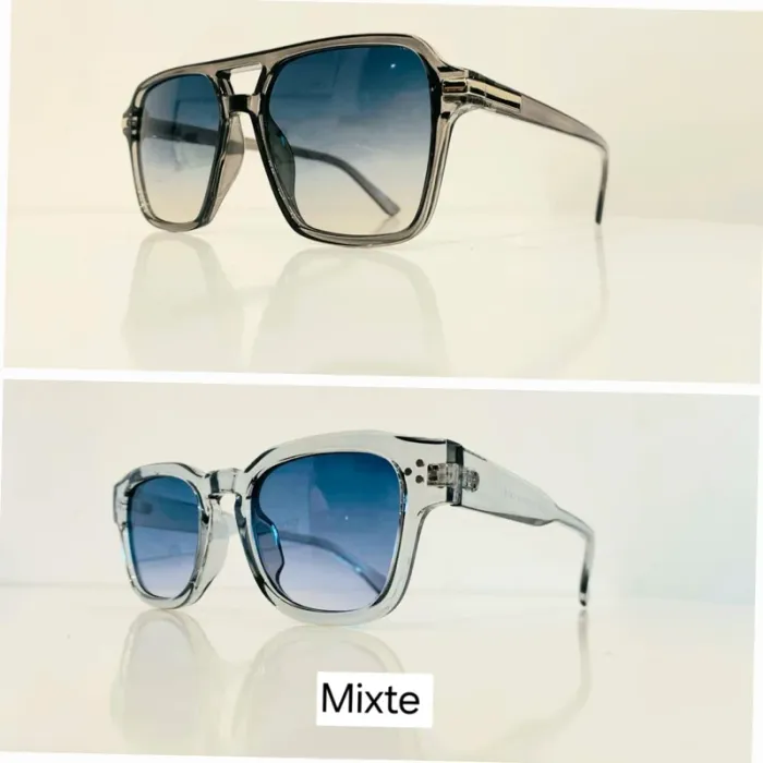 Lot de deux lunettes de soleil mixte grises transparentes verres bleus uvprotection cat 2 et 3