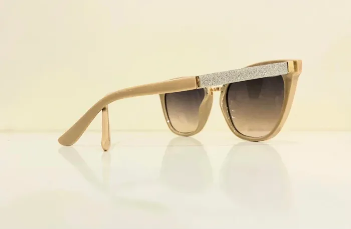 Lunette de soleil femme beige style cats bras en strass UV protection catégorie 2 - photo numéro 1