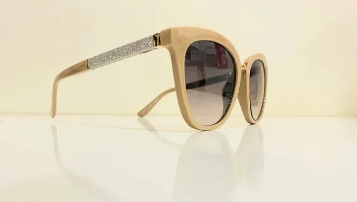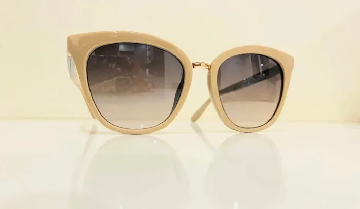 Lunette de soleil femme beige style cats bras en strass UV protection catégorie 2