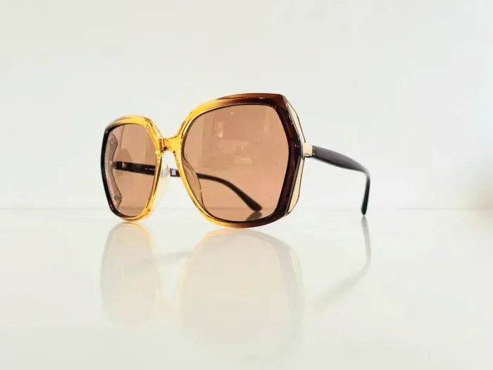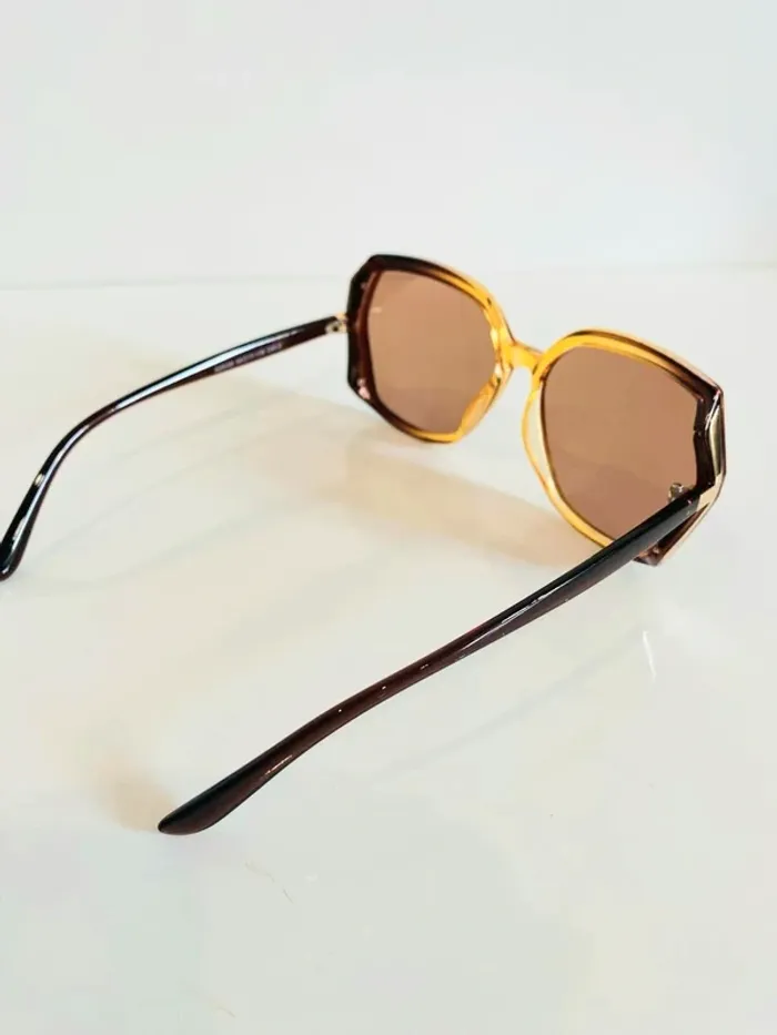 Lunette de soleil femme hexagonale marron dégradés en moutarde uvprotection catégorie 2 - photo numéro 1
