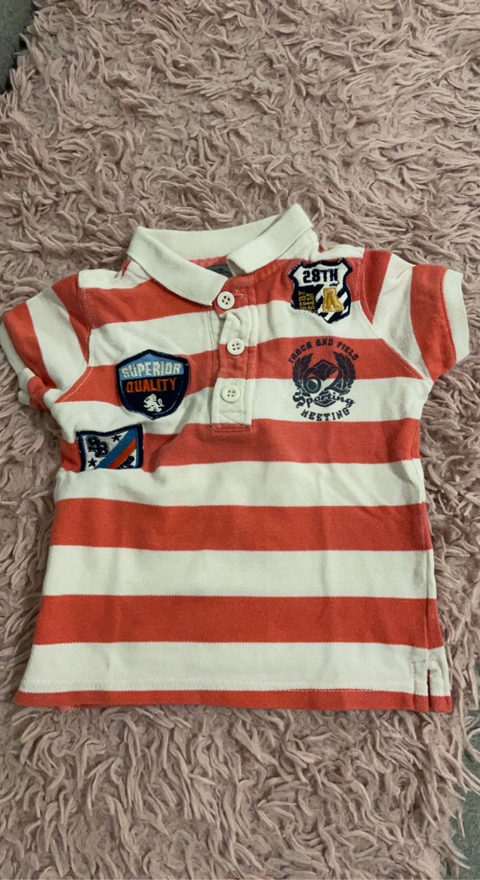 Polo tape a l’œil blanc et orange pêche/corail ( plus clair que sur la photo ) Très bon état, taille 2 ans 86cm