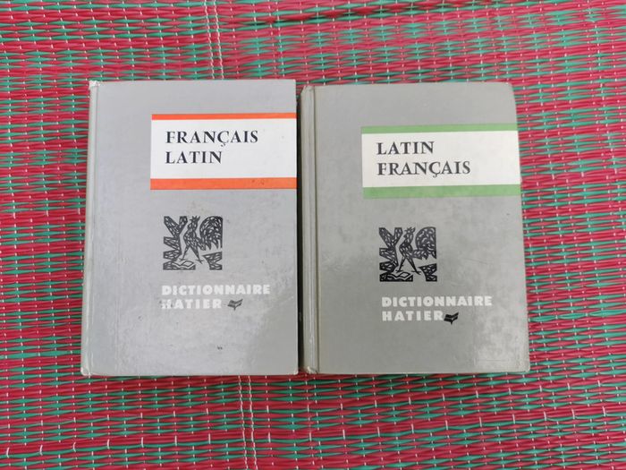 Lot de 2 petits dictionnaires latin-français, éd. Hatier, en très bon état, la tranche de l'un est jaunie, couverture rigide. Le lot n'est pas dissociable et comprend : - Français/latin, 1957, 863 p., par E. Decahors, docteur des lettres - Latin/français, 1960, 750p., par A. Gariel, nouvelle édition, comporte des écritures au crayon à la fin. Poids du lot 809g. #dictionnaire #latin #francais #dictionnairelatin #francaislatin