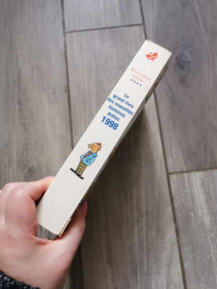 Le grand livre des nouvelles histoires drôles 1998, de Mina et André Guillois, dessins de Frapar, 1997, édition Marabout, 515 p., 662 g. Livre en bon état général pour son âge, couverture souple marquée, la première page comporte une écriture, vintage. #livrevintage #livreblagues #lgrandlivredesnouvelleshistoiresdroles #livrehumour #livredrole