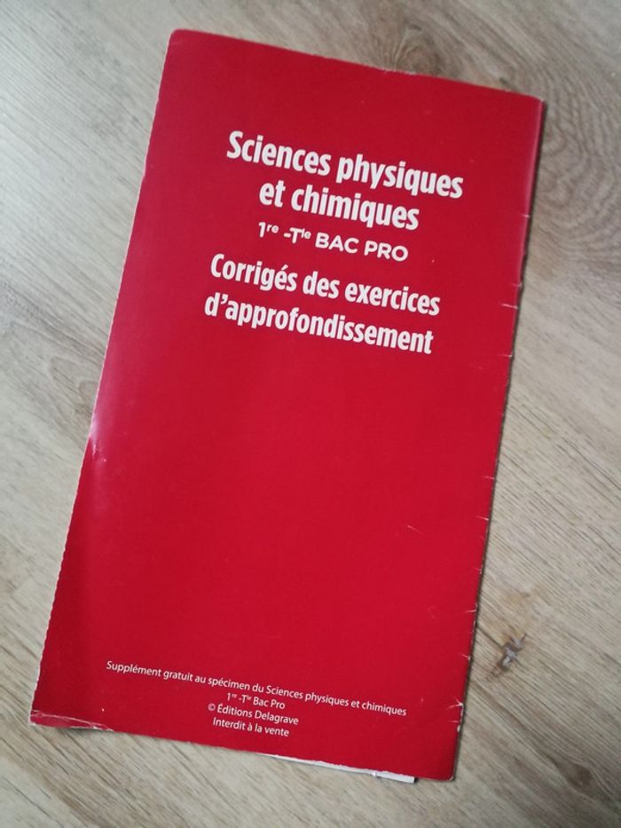 Fascicule Corrigés des exercices d'approfondissement, sciences physiques et chimuque. Tronc commun + T6-T7-T8-CME7-HS5-HS6, 1ère Terminale BAC PRO, éd. Delagrave, 22p., 74g. Bon état général, couverture usée (déchirure). Pensez à faire des lots afin de bénéficier des remises que j'ai régulièrement sur ma page. #corrigesexercices #corrigesdapprofondissement #delagrave