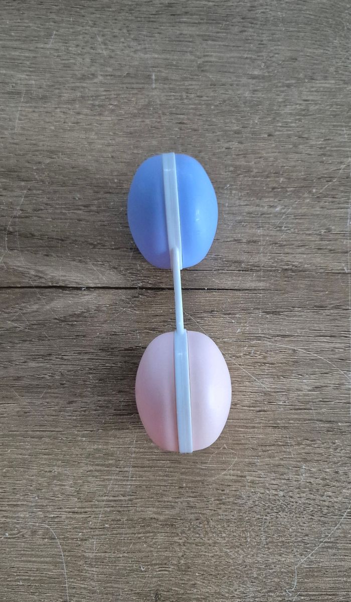 Hochet pour bébé bleu ciel et rose pâle Les boules au bout sont souples Très bon état